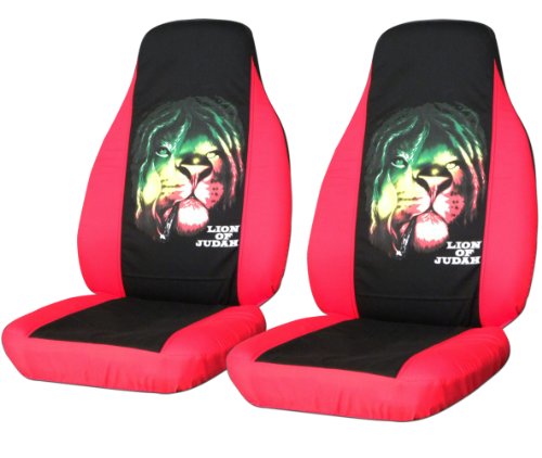 2 Red and Black "Lion of Judah" seat covers for a 2010 Suzuki Swift. Side airbag friendly.